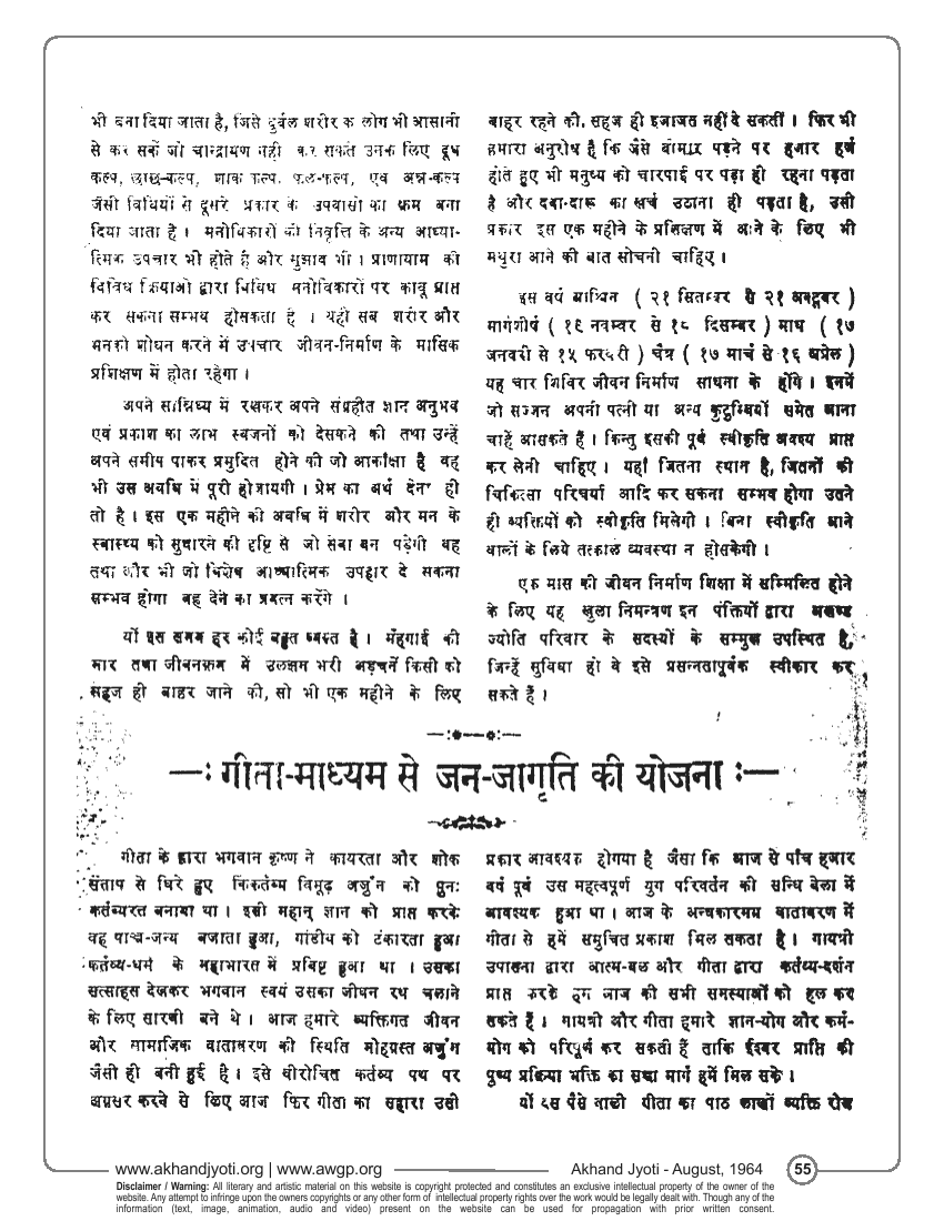 गीता-माध्यम से जन जागृति की योजना