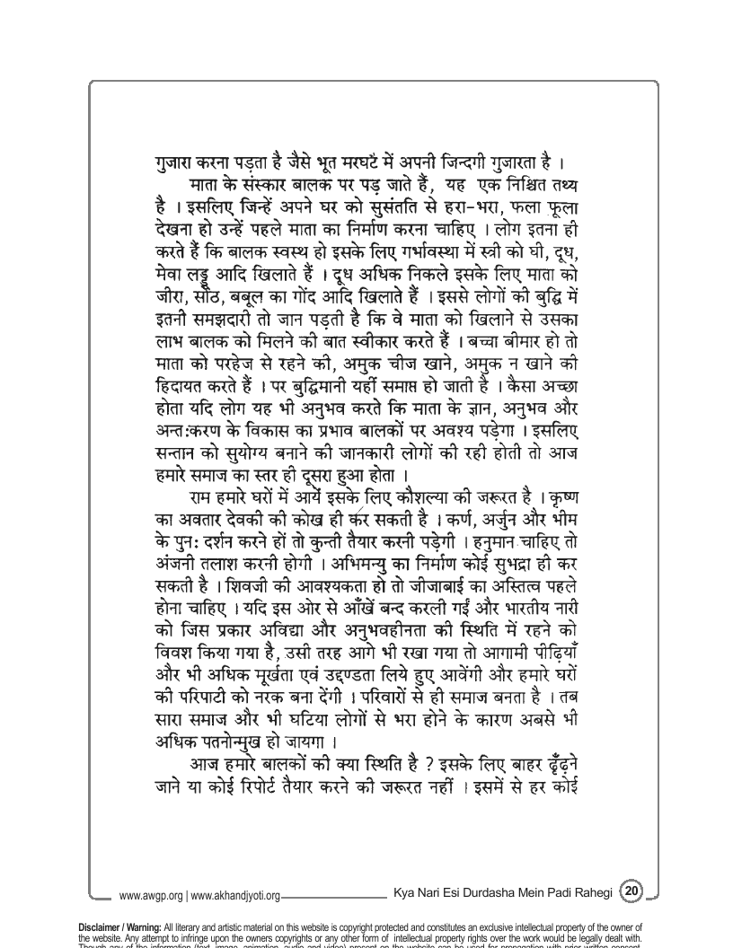 नारी को विकसितकिया जाना आवश्यक है