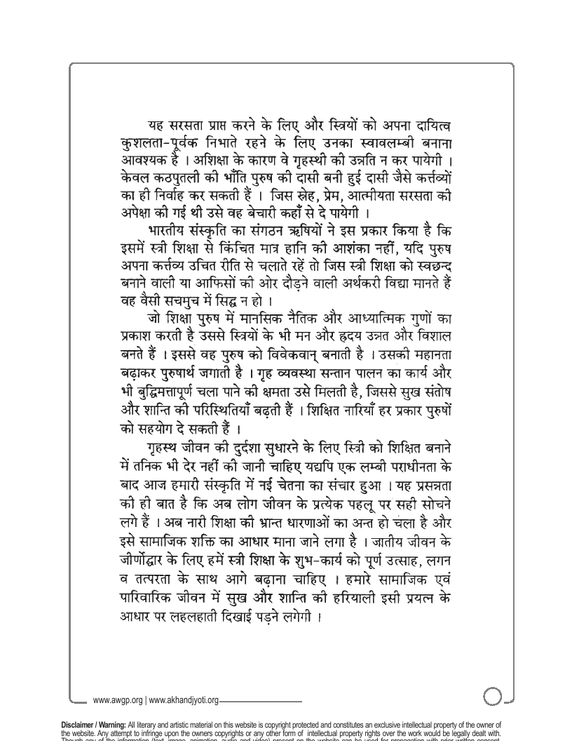 स्त्री शिक्षा की अनिवार्य आवश्यकता