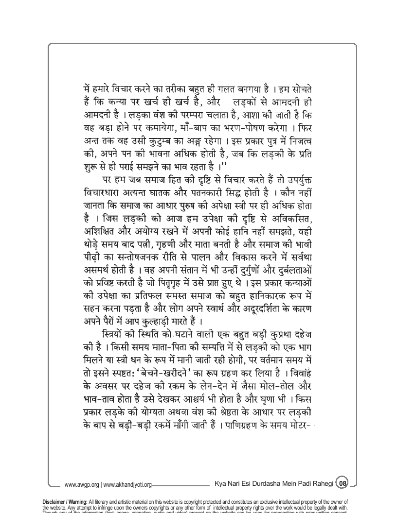 नारी को इस दुर्दशा में पड़ा न रहने दिया जाय