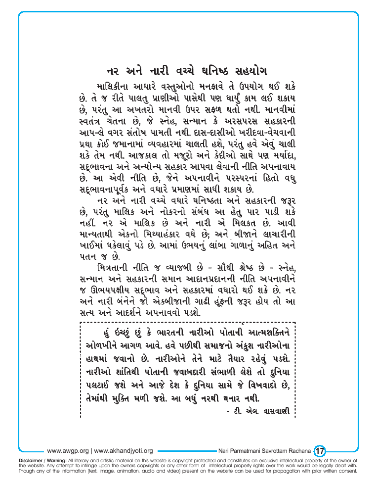 નારીને સંપૂર્ણ મનુષ્ય જ માનવી જોઈએ