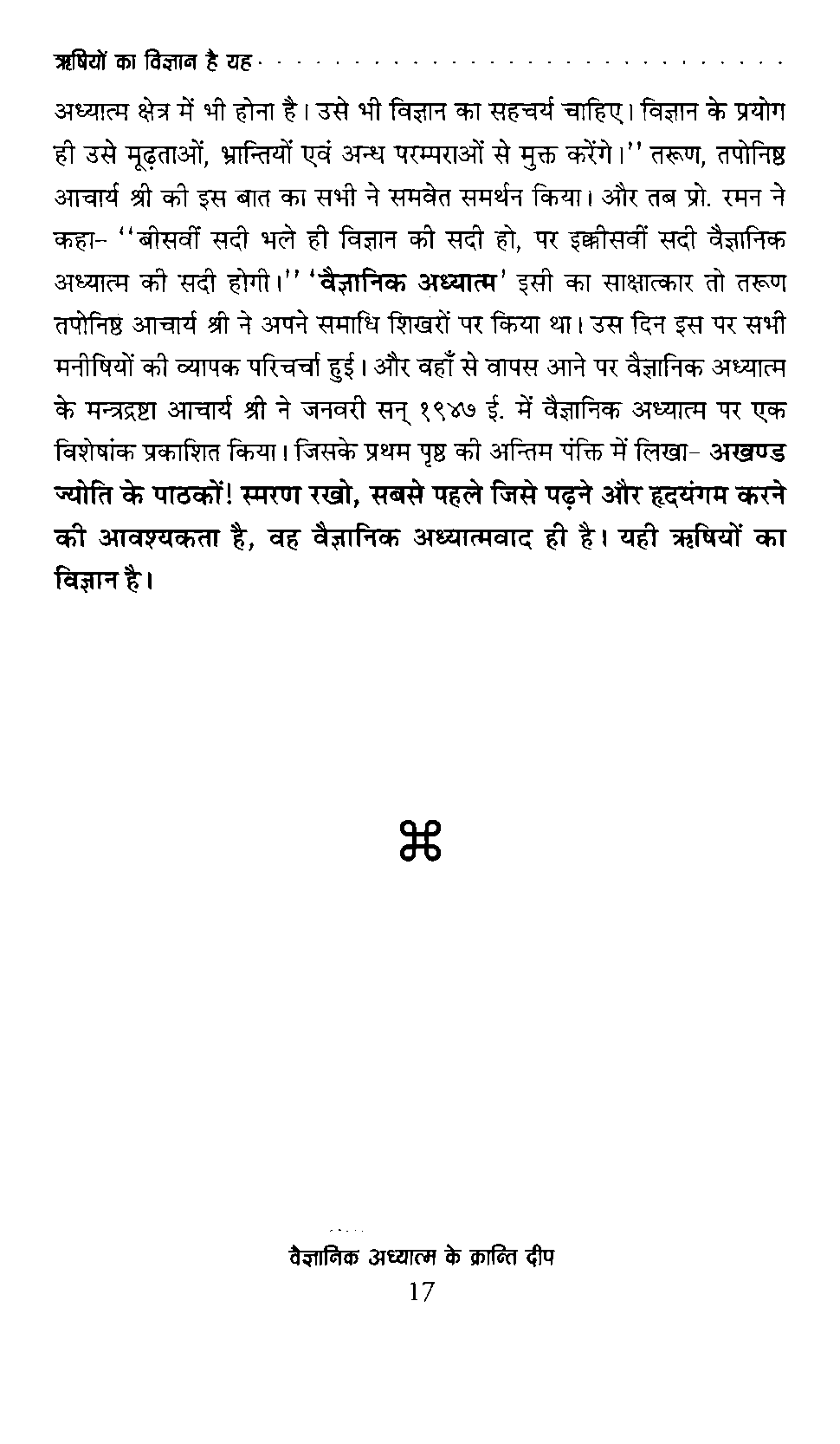 वैज्ञानिक अध्यात्म के क्रान्ति दीप