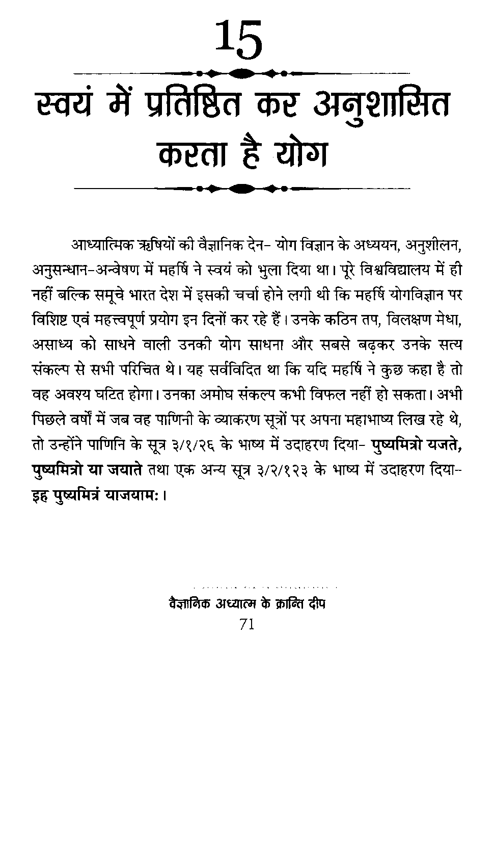 स्वयं में प्रतिष्ठित कर अनुशासित करता है योग