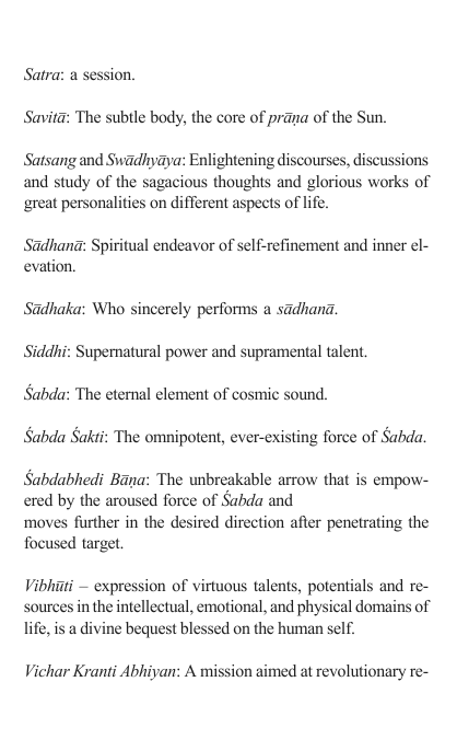 Glossary of terms (in Sanskrit) from Shastrik Literature
