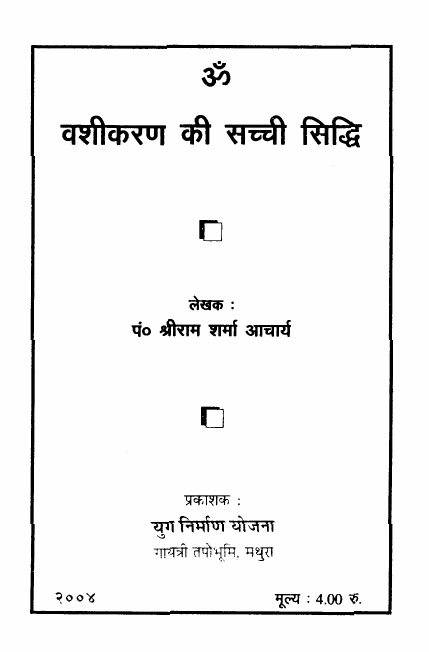 हमारे पास अनेक ऐसे पत्र आते रहते हैं, जिनमें लेखकों की इच्छा वशीकरण विद्या सीखने की होती है। अखबारों में जंत्र, मंत्र, ताबीज, अंगूठी आदि के ऐसे विज्ञापन छपते रहते हैं, जिनमें यह बताया जाता है कि इनका प्रयोग करने से हर कोई स्त्री-पुरुष वश में हो सकता है। इसके अतिरिक्त ऐसी भी अनेक कथा और किंवदंतियां प्रचलित हैं, जिनमें एक मंत्र विशेष द्वारा किसी व्यक्ति का बहुत व्यक्तियों को मोहित कर लेने का कथानक होता है। आल्हा, ढोला के ग्रामीण गीतों में ऐसे किस्से खूब भरे होते हैं, जिनमें किसी जादूगर द्वारा वशीकरण मंत्र से साधारण लोगों को वश में किया गया हो। पुराणों में भी ऐसी कथा खूब मिलती हैं। इन जनश्रुतियों से प्रभावित होकर साधारण जनता ऐसा विश्वास कर लेती है कि कोई ऐसा गुप्त मंत्र होगा, जिसकी सहायता से दूसरों को वश में किया जा सकता है। हम इस विद्या को क्यों सीखना चाहते हैं? इन प्रश्न का उत्तर देने में कोई शब्दाडंबर भले ही रचे, पर सीखने वाले की हार्दिक इच्छा दो पाई जाती हैं— (1) अपने से भिन्न योनि के मनुष्य को वश में करके उससे कामतृप्ति की जाए, (2) बुद्धि को भ्रमित करके उसका पैसा झटक लिया जाए। वशीकरण सीखने के लिए हजारों महानुभाव हमें पत्र भेजा करते हैं, परंतु उनमें अब तक एक भी हमें ऐसा न मिला, जो कामिनी-कंचन प्राप्त करने के स्वार्थ को छोड़कर अन्य किसी कारण से वशीकरण विद्या को सीखना चाहते हों।