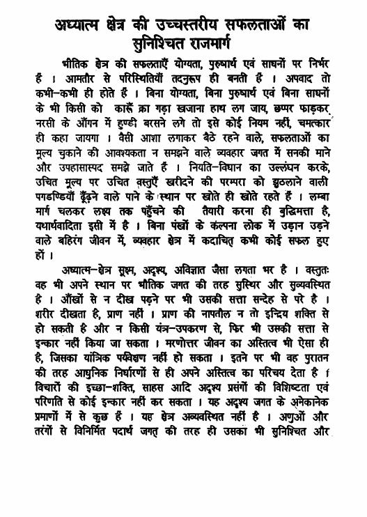 आध्यार्म क्षेत्र की उच्चस्तरीय सफलताओं का सुनिश्चित राजमार्ग